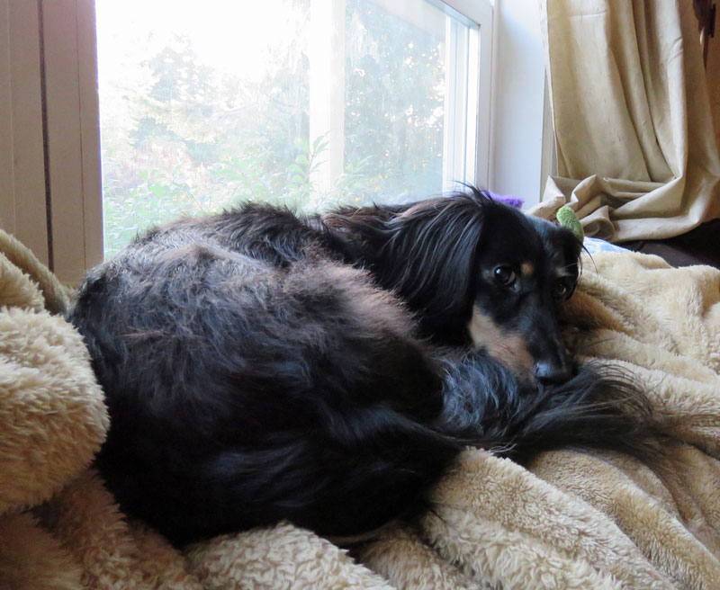 And here he is back home, much happier, having returned to his favorite place in all the world -- the front window.