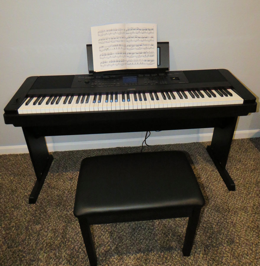 It's a Yamaha digital piano, with a terrific sound. The hammered action feature really makes the keys feel as if they are weighted -- it's amazingly close to having an acoustic piano, at one-half to one-third the cost.