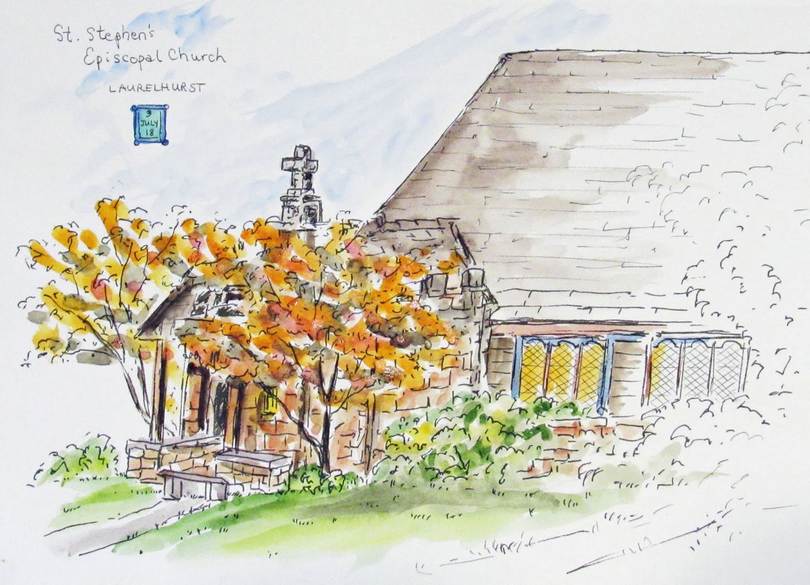 I did two drawings during those two hours. There was music and food and artist booths, and quite a few people came up to see what I was doing and to chat. One garden plot attracted me for its aquatic theme, with colorful paper fish decorations: