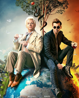 DAY 9: More touching up on the Earth. Painted Aziraphale's shoes (the angel character on the left).